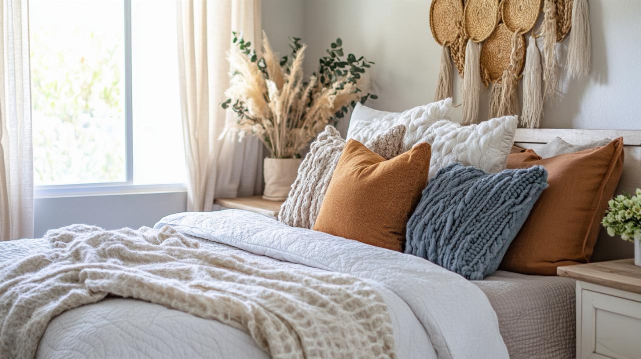 Au-delà des plantes vivantes, de nombreux matériaux naturels peuvent enrichir la décoration d'une chambre. Des branches d'eucalyptus séchées disposées dans un vase apportent une touche végétale durable et diffusent un parfum subtil. Les galets ramassés lors de promenades, disposés dans des coupes transparentes, créent des compositions zen qui invitent à la méditation. Les planches de bois brut utilisées comme étagères flottantes ou comme base pour surélever le lit ajoutent une dimension rustique chaleureuse. Les fibres naturelles comme le rotin, le jonc de mer ou le bambou, présentes dans les paniers de rangement, les stores ou les cadres de miroirs, renforcent cette connexion avec la nature. Ces matériaux possèdent également l'avantage d'être souvent économiques et durables, s'inscrivant parfaitement dans une démarche de rénovation responsable et maîtrisée budgétairement.
